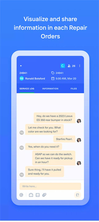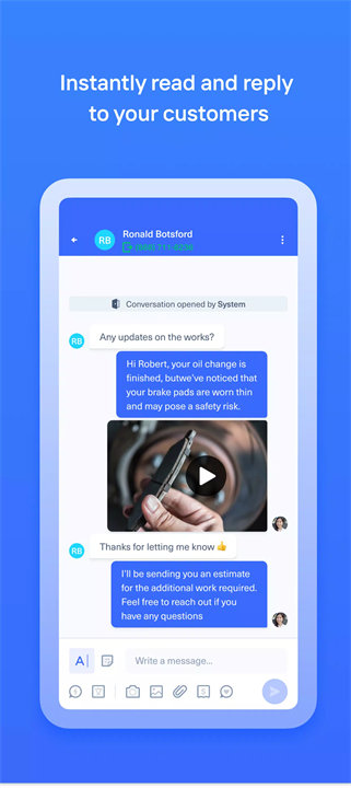 Stay in touch with your customers on the go. Receive and respond to messages in real-time, helping build trust and deliver timely service updates.