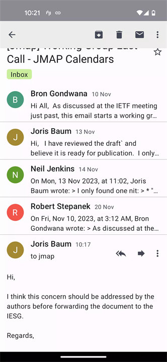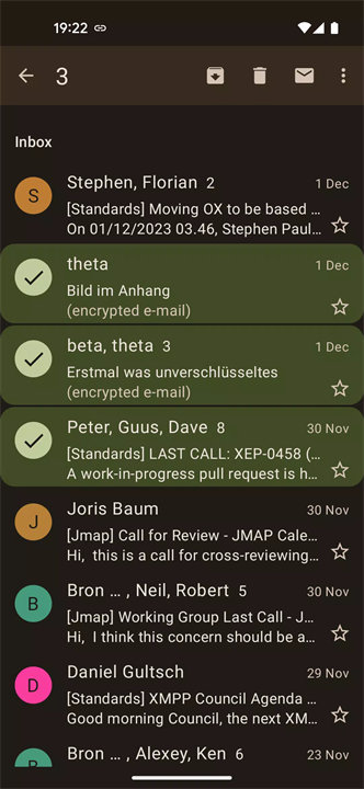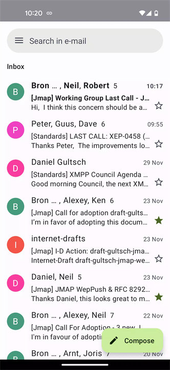 Ltt.rs (pronounced "Letters") is a minimalist, privacy-focused email client for Android built specifically for use with JMAP (JSON Meta Application Protocol)-compatible email servers. It emphasizes simplicity, security, and efficient performance through modern Android architecture, heavy caching, and a clean design. Ltt.rs is ideal for technically inclined users or developers who prefer a streamlined, no-frills email experience with built-in encryption support. Download Ltt.rs now!