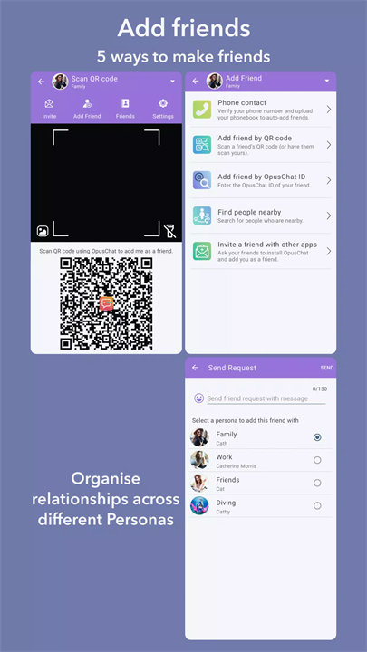 OpusChat is a secure, private, and fully-featured messaging app that allows users to manage multiple personas within a single platform. It is designed to offer full control over privacy, letting users customize their communication for different relationships. Whether you're chatting with friends, family, or coworkers, OpusChat lets you switch between personas seamlessly without needing to sign in or out of separate accounts. This app is perfect for people who want to manage various aspects of their identity in a safe and organized manner. Download OpusChat now!