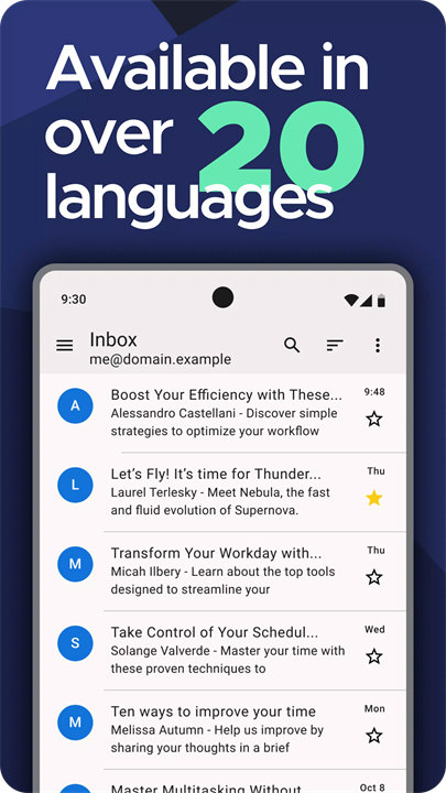 Manage multiple email accounts (Gmail, Outlook, Yahoo, iCloud, etc.) within one app. The optional Unified Inbox feature helps streamline email management across all your accounts.