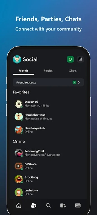 - Receive notifications for party invites, messages, and achievements to stay updated.