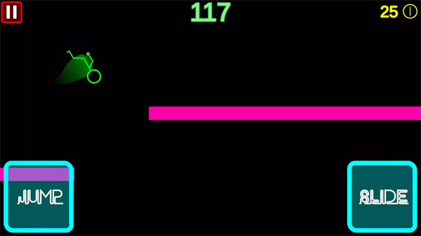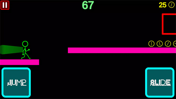 You control your stickman by tapping the left side of the screen to jump and the right side to slide under obstacles. The simple tap system makes it easy to navigate through the game.