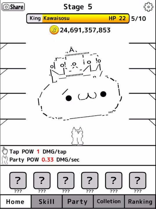 Simply tap the screen to keep your ASCII cat moving, battling, and gaining experience—even when you're offline.