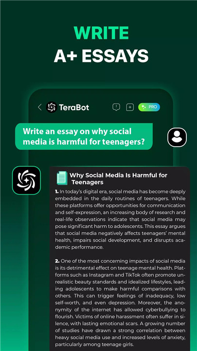 TeraBot is intended for users aged 12 and above, with all content moderated to ensure safety and compliance with Google Play policies. By combining creative AI generation with intelligent chatbot functionality, TeraBot provides a complete platform for exploration, learning, and productivity.