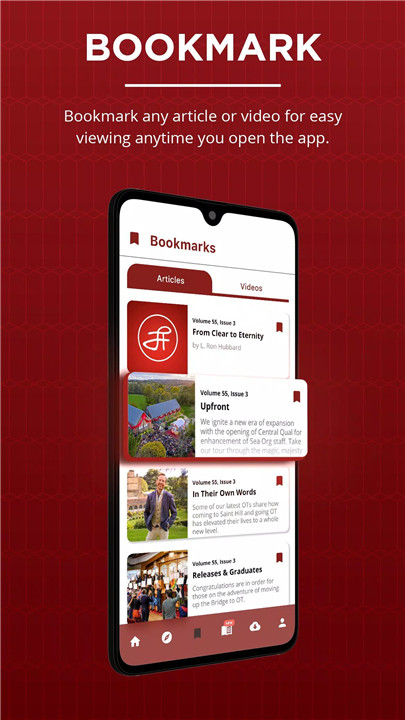 Advance! magazine keeps members up-to-date with instant notifications whenever a new issue or video is released. This ensures that users are always connected to the latest stories, events, and developments at Saint Hill.