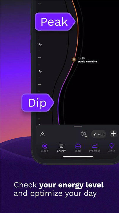 Your internal body clock, or circadian rhythm, governs when you feel alert or need rest. RISE’s advanced algorithms predict your unique daily energy schedule so you can plan work, rest, and exercise around your natural highs and lows. Gain control over your productivity and sleep timing for optimal performance.