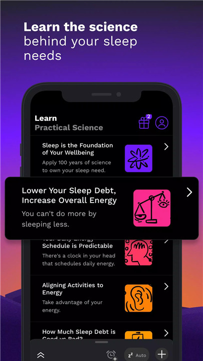 By focusing on reducing sleep debt and aligning your schedule with your circadian rhythm, RISE gives personalized routines and habit-building tools that tackle the root causes of poor sleep.