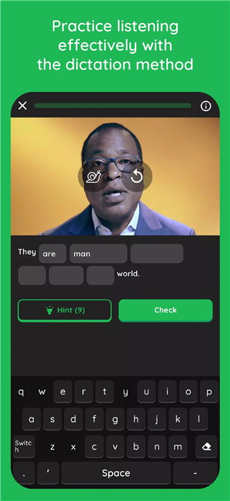 Improve your listening comprehension with a variety of exercises ranging from beginner to advanced levels. Practice dictation to sharpen your ability to recognize sounds and improve spelling. The listening activities include short dialogues, longer conversations, and speeches tailored to your skill level.