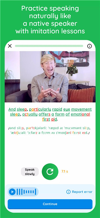 Lingoland’s Shadowing feature helps you mimic native speakers by listening to sentences from videos and repeating them with instant accuracy feedback. This practice focuses on improving your intonation and rhythm, making your English sound more natural and fluent.