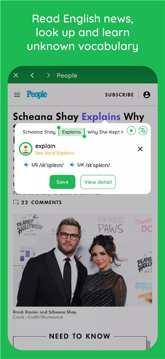 Lingoland employs the spaced repetition method combined with intelligent AI algorithms to help you memorize and retain vocabulary effectively over the long term. The app assesses your proficiency level and prioritizes words you need to practice more. You can choose from hundreds of topics—such as work, travel, or daily life—and learn words in context through videos, articles, and real-life content. The built-in quick lookup tool lets you instantly find meanings, pronunciations, and examples while reading or watching videos.