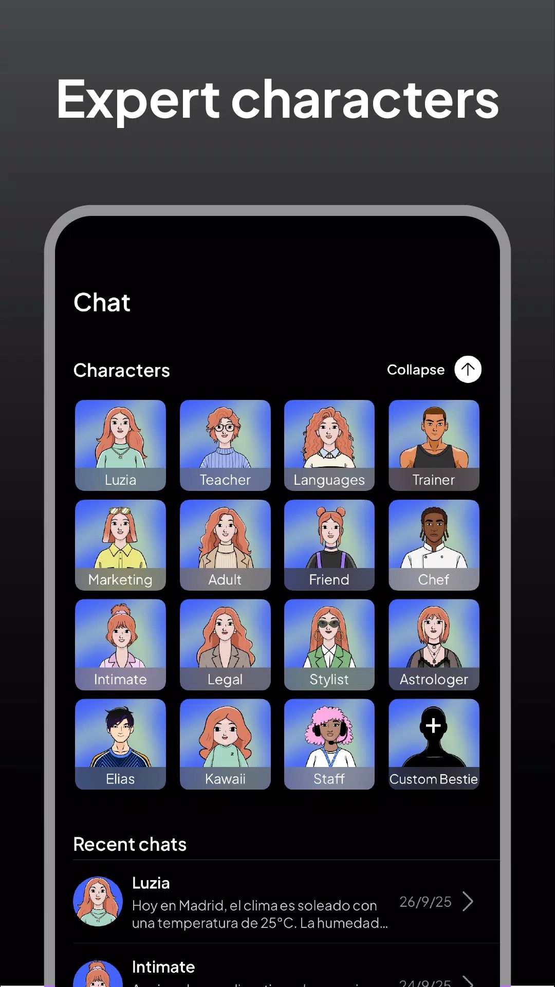 Communication with Luzia is effortless and intuitive. Users can interact via voice or text, enjoying smooth and friendly exchanges. AI responses are context-aware, ensuring a natural and personalized experience every time.