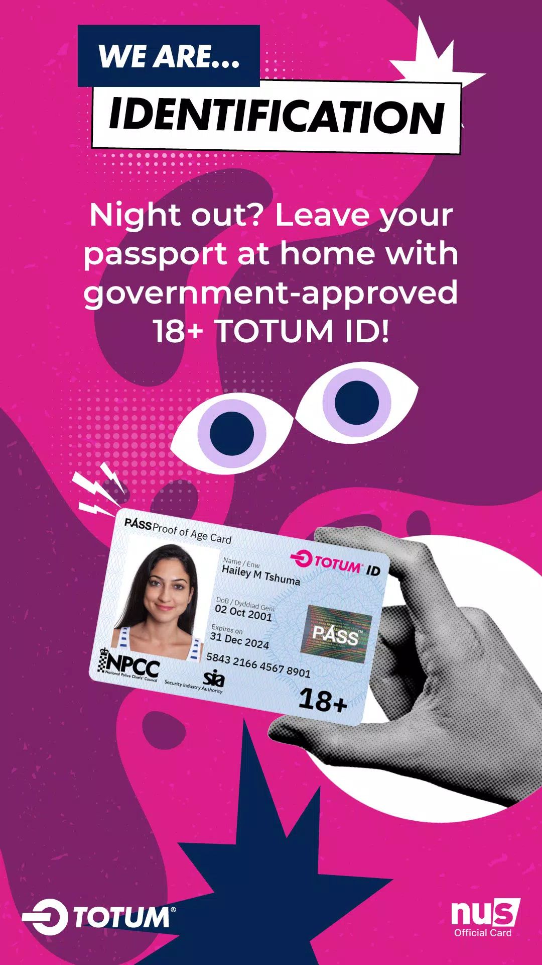 TOTUM ID is a trusted, widely recognised form of proof-of-age in the UK, supported by the Home Office, Chartered Trading Standards Institute, and the National Police Chiefs' Council. The ID comes in two versions—one for 18+ and one for 16-17-year-olds—and is accepted at pubs, clubs, festivals, cinemas, and more, letting you leave your passport safely at home.