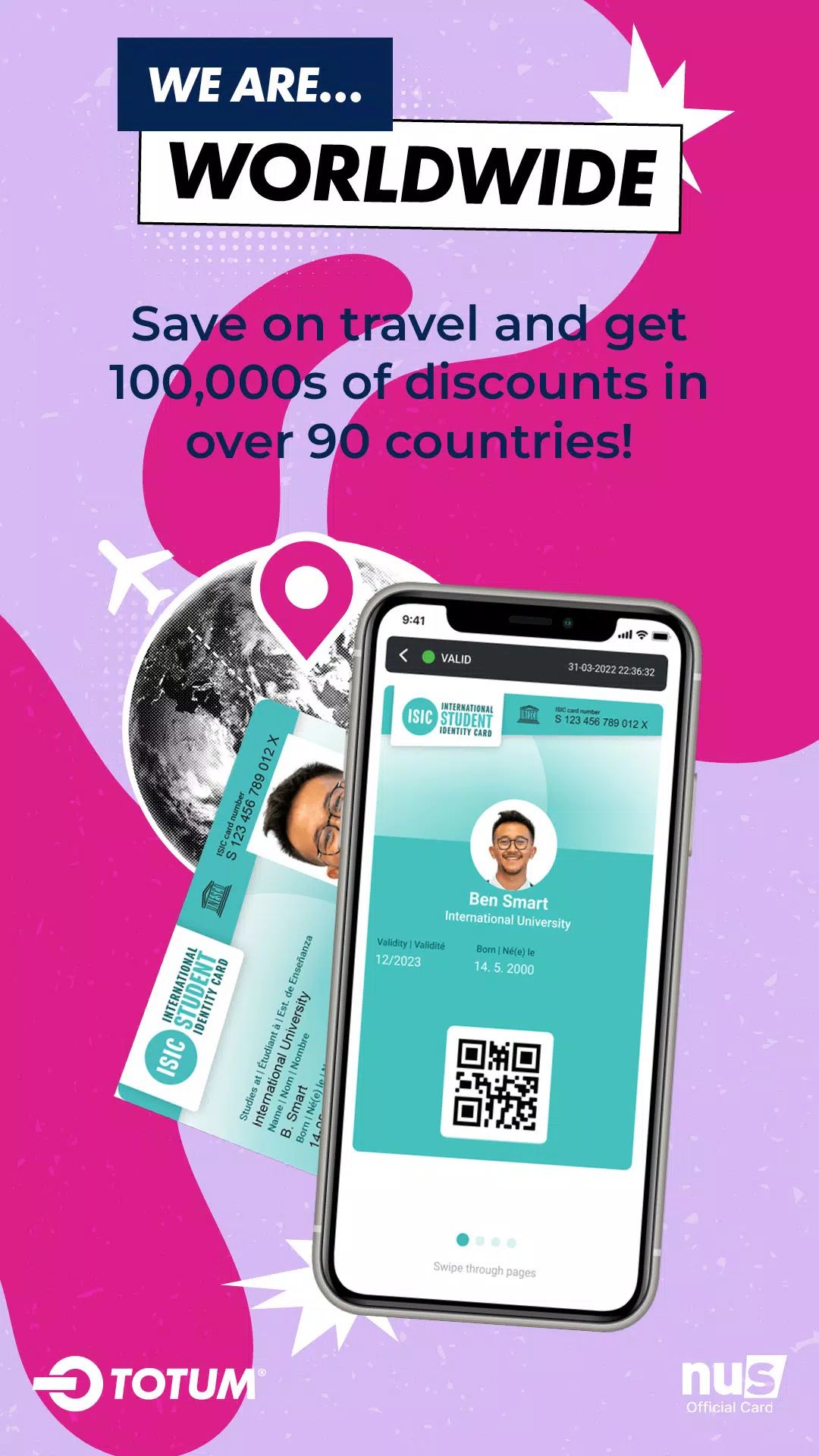 Travel with confidence thanks to TOTUM’s international cards—the International Student Identity Card (ISIC), International Youth Travel Card (IYTC), and International Teacher Identity Card (ITIC). These cards unlock thousands of discounts worldwide on flights, accommodation, food, entertainment, and transport, helping you save wherever your journey takes you.