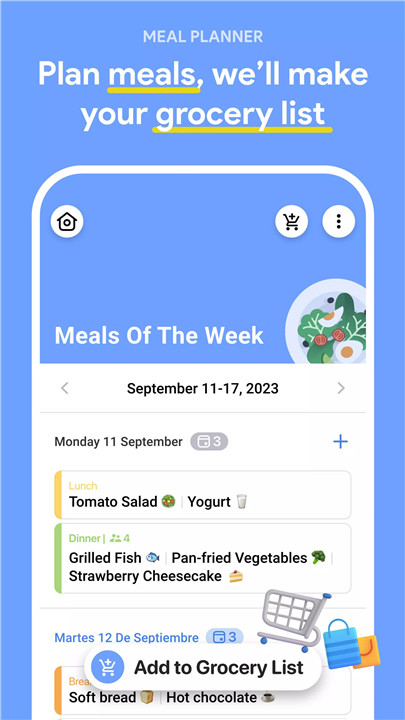 - Premium users can plan meals for the week and add ingredients directly to shopping lists.