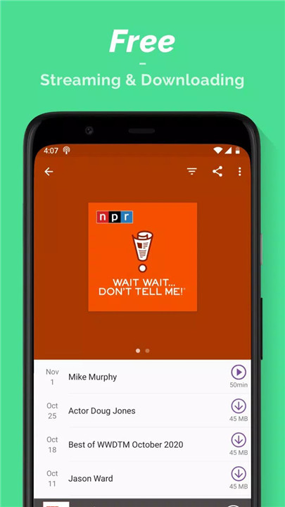 Episodes can be downloaded as MP3 files without any additional cost or limitations. This allows uninterrupted listening even without an internet connection, perfect for travel or areas with limited connectivity.