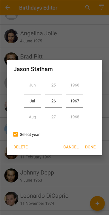 A: The application features a seamless synchronization tool that links directly to your Android phonebook to save you from the tedious task of manual data entry. It automatically scans your existing contacts for any associated birth dates and pulls that information into the app, creating a comprehensive list of celebrations with almost no effort on your part.