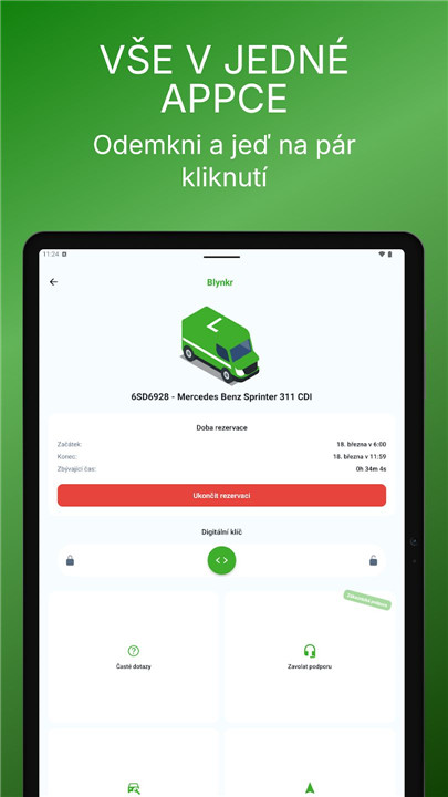 The app integrates advanced technology for a fully contactless experience. Vans feature electric locks that can be controlled directly from the app, allowing users to start and end rentals without in-person interaction. With the vehicle always accessible via the app, users have real-time control and convenience at their fingertips.