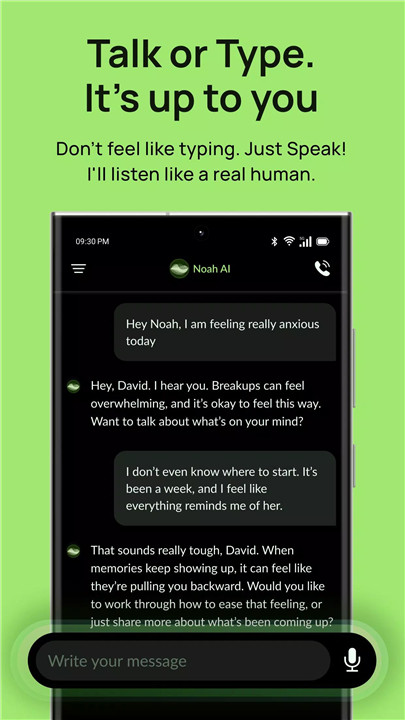 Whether short check-ins or longer, thoughtful conversations feel more comfortable, Noah adapts accordingly. Communication remains judgment-free and pressure-free, encouraging openness at any pace. The conversational style is friendly, human-like, and easy to engage with.