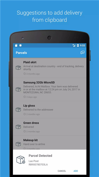 Please note: Parcels App is not affiliated with any government entity. It gathers tracking data directly from official national postal websites to provide reliable information.