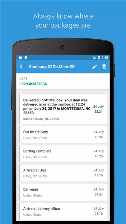 Get estimated delivery dates for every package you track, so you know when to expect your orders. This feature helps you plan ahead and stay organized.