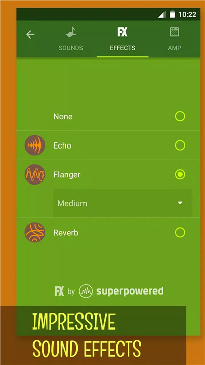 Access a large categorized library of guitar types, playing modes, and instrument sounds. Funny, exotic, and animal-inspired sounds are also included. Users can assign different sounds to each string, creating a personal band or an entirely new audio experience.
