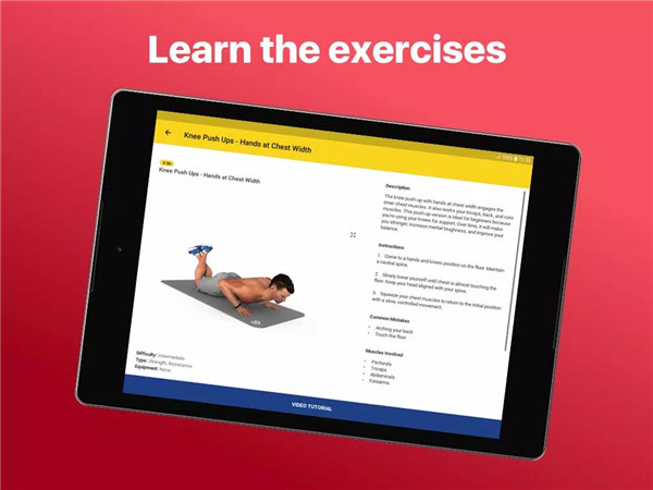 Each exercise includes detailed descriptions, clear instructions, and 3D previews to demonstrate proper form and technique. The app also provides access to a comprehensive exercise library and video tutorials covering key movements. Additionally, it highlights common mistakes to avoid, helping users improve performance while reducing the risk of injury.