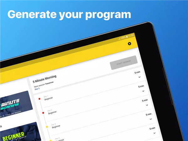 The app includes a personalized 4-week training program tailored to fitness level, preferred workouts, and schedule. Users can select routines, set a workout calendar, and track progress over time. This structured approach ensures steady improvement and helps maintain accountability and motivation.