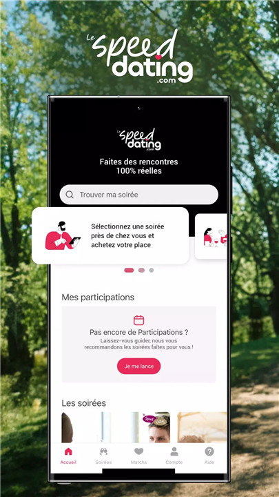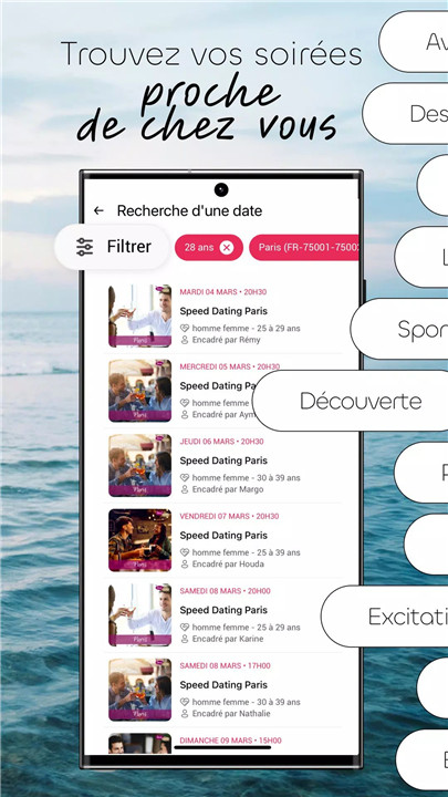 Discover hundreds of Speed Dating parties each month, even in smaller towns. Activate geolocation in the app to find the next event near you instantly.