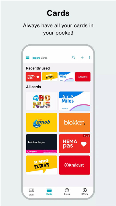 Dappre Cards keeps your passes, loyalty cards, and gift cards neatly in one place. No more searching, digging, or forgetting your cards at home. Everything stays organized, digital, and ready whenever you need it.