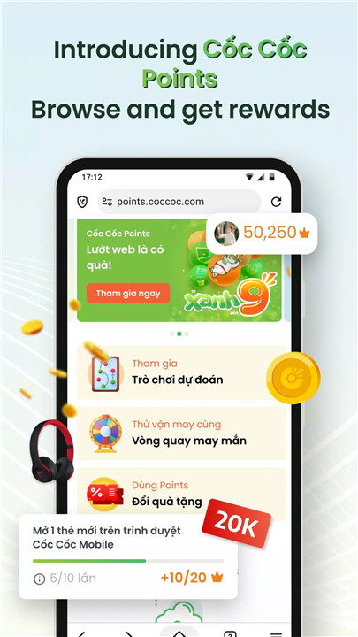Yes, daily browsing activities earn Co Co Points, which can be exchanged for gifts or used in games and reward programs offered within the browser.