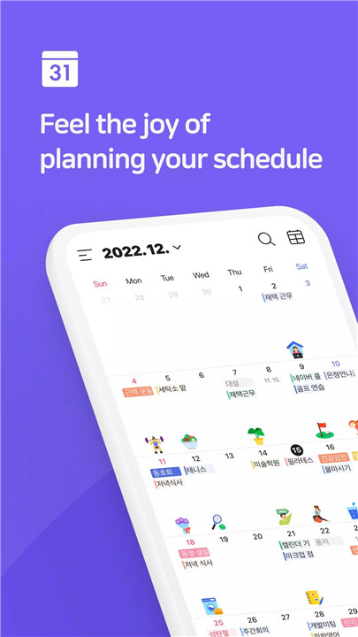 NAVER Calendar syncs with phone calendars and PCs for seamless multi-device planning. Students and busy parents can view timetables with widgets and import events effortlessly.