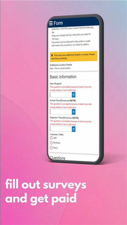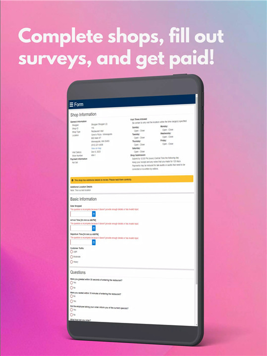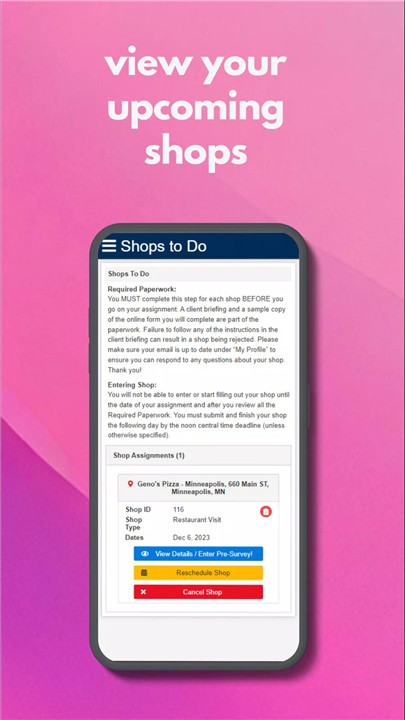 Each assignment includes detailed shop instructions to ensure accurate evaluations. The app also provides turn-by-turn directions using integrated maps, helping users reach shop locations efficiently and on time.