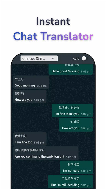 Translate messages directly within messaging apps such as WhatsApp, WhatsApp Business, Messenger, Telegram, Character AI, and Chai AI (Chai). Incoming messages appear in the user’s language, and outgoing messages can be typed in the user’s language and sent in the recipient’s language. This eliminates the need for copy-pasting or switching apps, enabling smooth international communication.