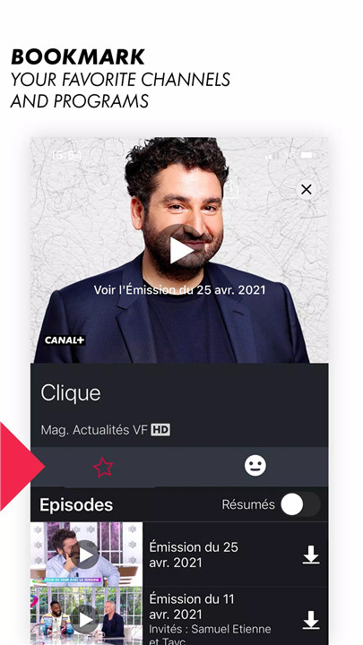 With the CANAL+ app, you can download your favorite programs to watch offline. Perfect for flights, commutes, or any time when Wi-Fi isn’t available, this feature ensures your entertainment is always accessible. (Note: some content may not be available for download due to distributor restrictions.)