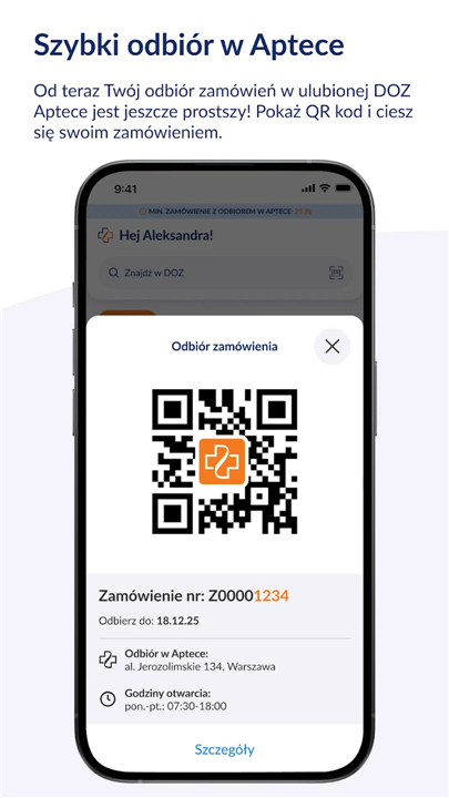• Choose flexible delivery options, including home courier or free pickup at thousands of DOZ Pharmacies on orders over 25 PLN.