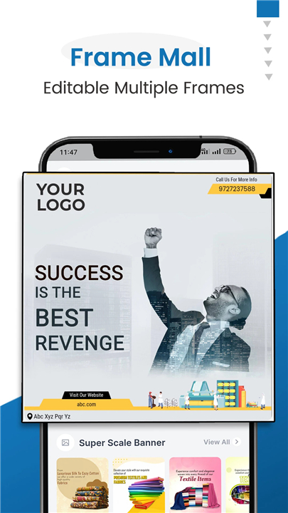 • Effortless Customization: Seamlessly integrate your business logo, contact details, and brand identity into high-quality flyers, posters, and status videos.
