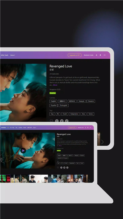 GagaOOLala’s interface is available in English, Traditional and Simplified Chinese, and Thai. Subtitles are provided in multiple languages, including English, Chinese (Traditional and Simplified), Thai, and more, making global content accessible to diverse audiences.