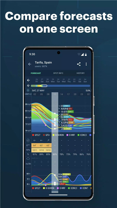 Connect with other weather enthusiasts, share real-time conditions, and get local insights through spot-based chats and community weather reports.