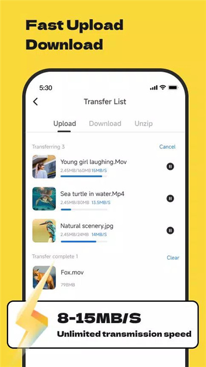 Easily upload files from your Android device and transfer them to friends, family, or other storage services. SoPhon supports multiple file types and allows simultaneous downloads for efficiency. Creating folders and moving files between them makes organization simple.