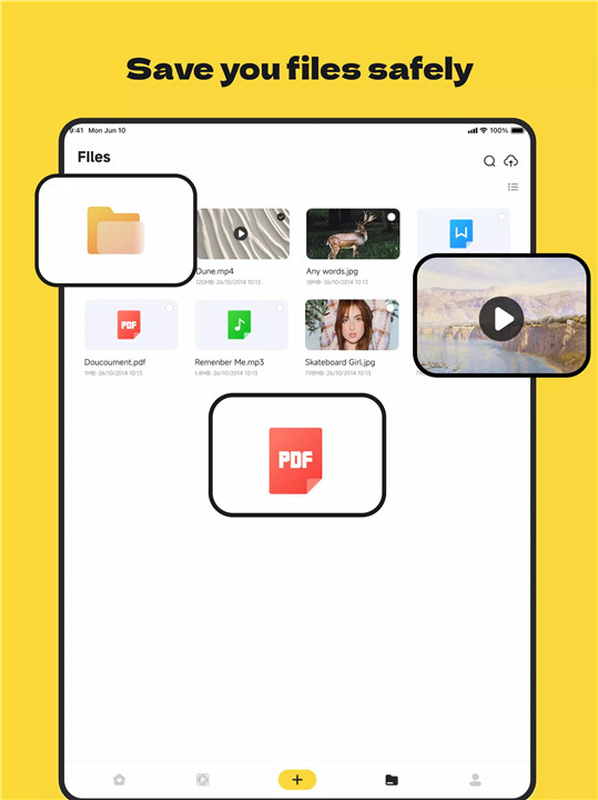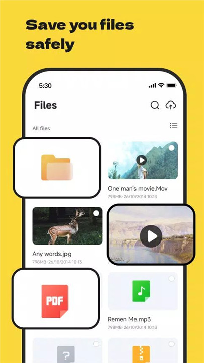 Access your files safely from any device. Archive, search, and manage documents easily using keywords or file names. The app supports multi-file operations, so you can download, move, or share multiple files efficiently.