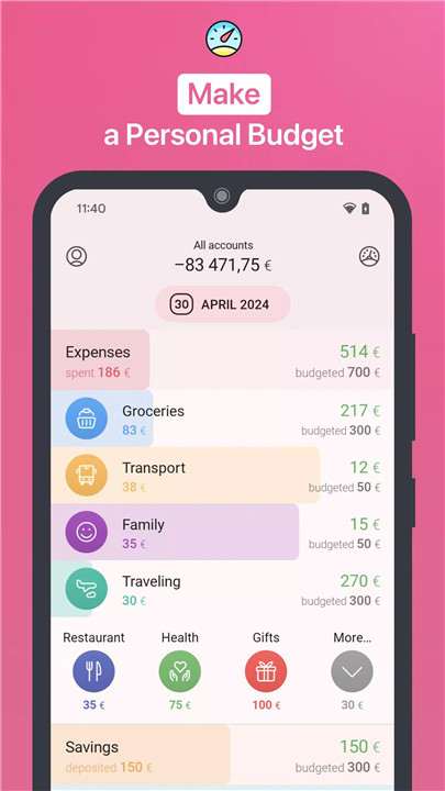 The app enables easy planning of income and expenses, ensuring financial goals are achievable. By setting budgets, users can avoid accidental or impulsive purchases and maintain control over monthly spending.
