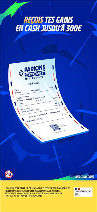 No complicated sign-ups or account creation are required. Just prepare your bets on the app whenever it suits you, then head to an FDJ point of sale to finalize your bet with cash or card payment. Your bets are saved as QR codes in the app.