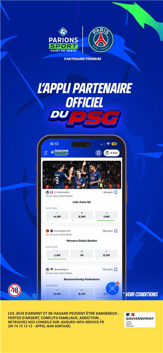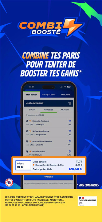 With over 20,000 bets placed daily through the app, you get access to more betting options than traditional paper slips. Bet on a wide range of sports including football, tennis, basketball, rugby, hockey, MMA, and more. Major competitions like Ligue 1, Premier League, Champions League, Roland-Garros, NBA, and even the Olympic Games are available. You can bet on goalscorers, halftime results, combo bonuses, and other exciting markets.