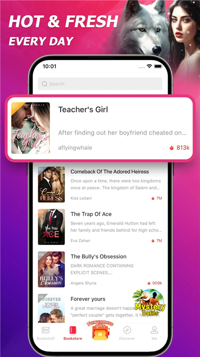• Explore a diverse library spanning romance, magical realism, wuxia, sci-fi, and chilling horror.