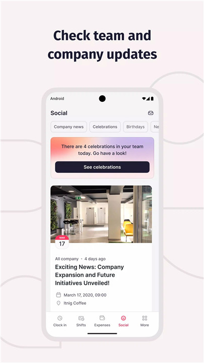 Important company updates are always accessible. Stay informed about internal news, upcoming events, new hires, birthdays, and other announcements that help maintain a connected workplace culture.