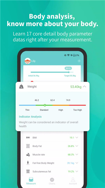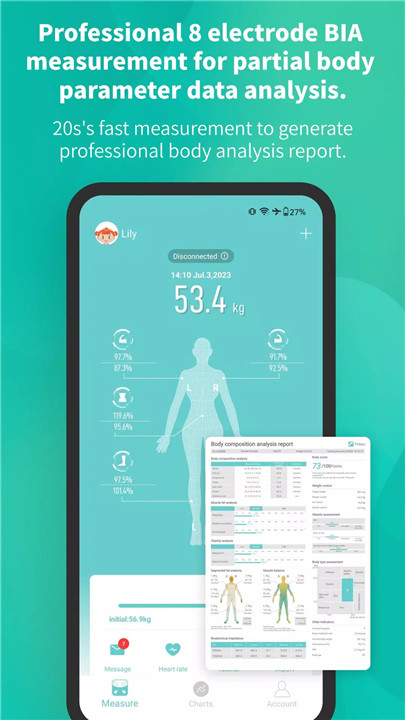Fitdays provides detailed analysis across 13 key body composition metrics. This comprehensive data gives you a clearer picture of your health beyond just the scale, helping you understand muscle mass, fat distribution, water percentage, and more.