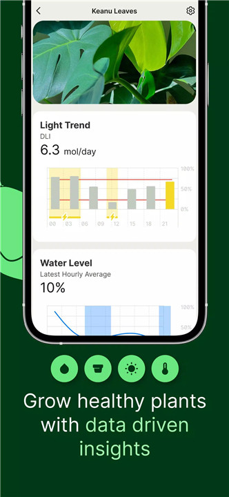 The app sends real-time push notifications for watering, fertilizing, repotting, or other care actions, based on sensor data and plant-specific needs.