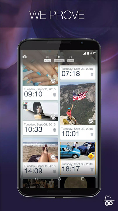 Proofy verifies that photos are real, unedited, and authentic by recording the exact date, time, and metadata of each picture taken with the app.