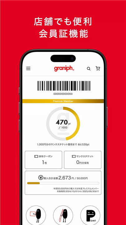 Graniph app users can store a digital membership card directly within the platform. Presenting the membership screen in-store allows points to be collected quickly and easily. These points can later be exchanged for special rewards, including the Granif Thanks Ticket, which functions as a discount coupon.