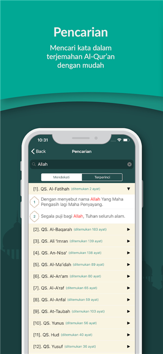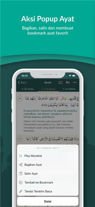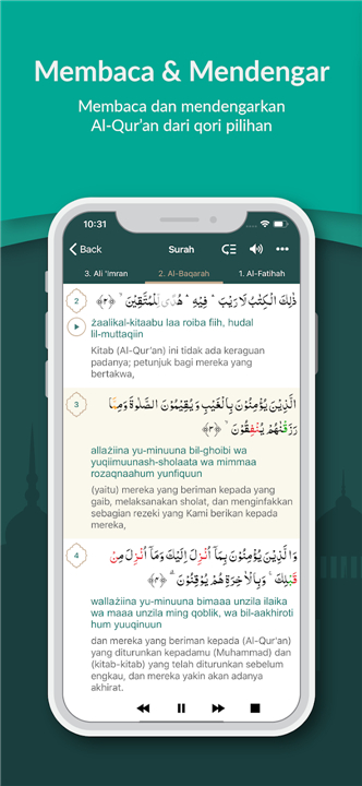 • Explore the meaning of every verse with Indonesian translations from KemenAg-RI and Tafsir Al Jalalain.